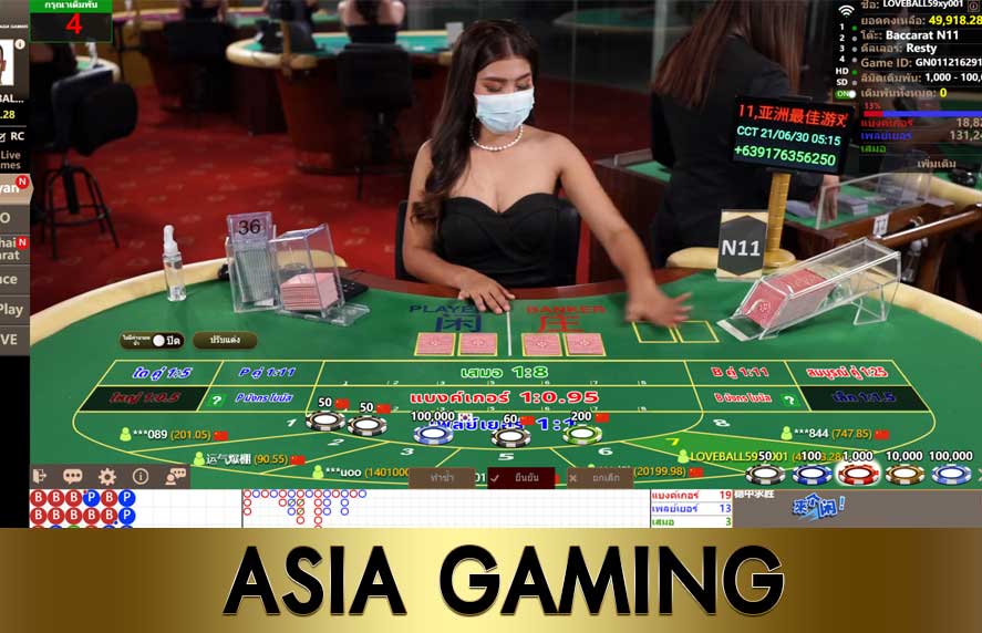 Asia Gaming แบรนด์คุณภาพเกรด A ที่มีจำนวนผู้เล่นเยอะที่สุดในโซนเอเชีย และมีความโปร่งใสที่สุด โดยสมาชิกที่ชอบเล่นไม้หนักๆ ชอบมาลงเล่นกันที่แบรนด์นี้ Asia Gaming ได้รับความนิยมอย่างมากในทุกวันนี้และเพิ่มขึ้นเรื่อยๆจากยอดผู้เล่นในโซนเอเชีย พร้อมดีลเลอร์สาวสวยที่คัดมาอย่างดีตรงปกเปะคอยบริการอยู่ตลอด 24 ชม. เป็นอีกแบรนด์คุณภาพที่ไม่แนะนำไม่ได้แล้วสำหรับ Asia Gaming